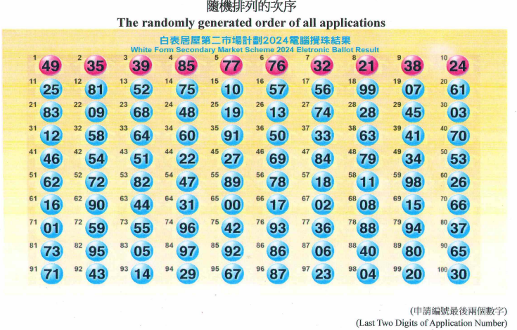 首10個號碼:49、35、39、85、77、76、32、21、38、24